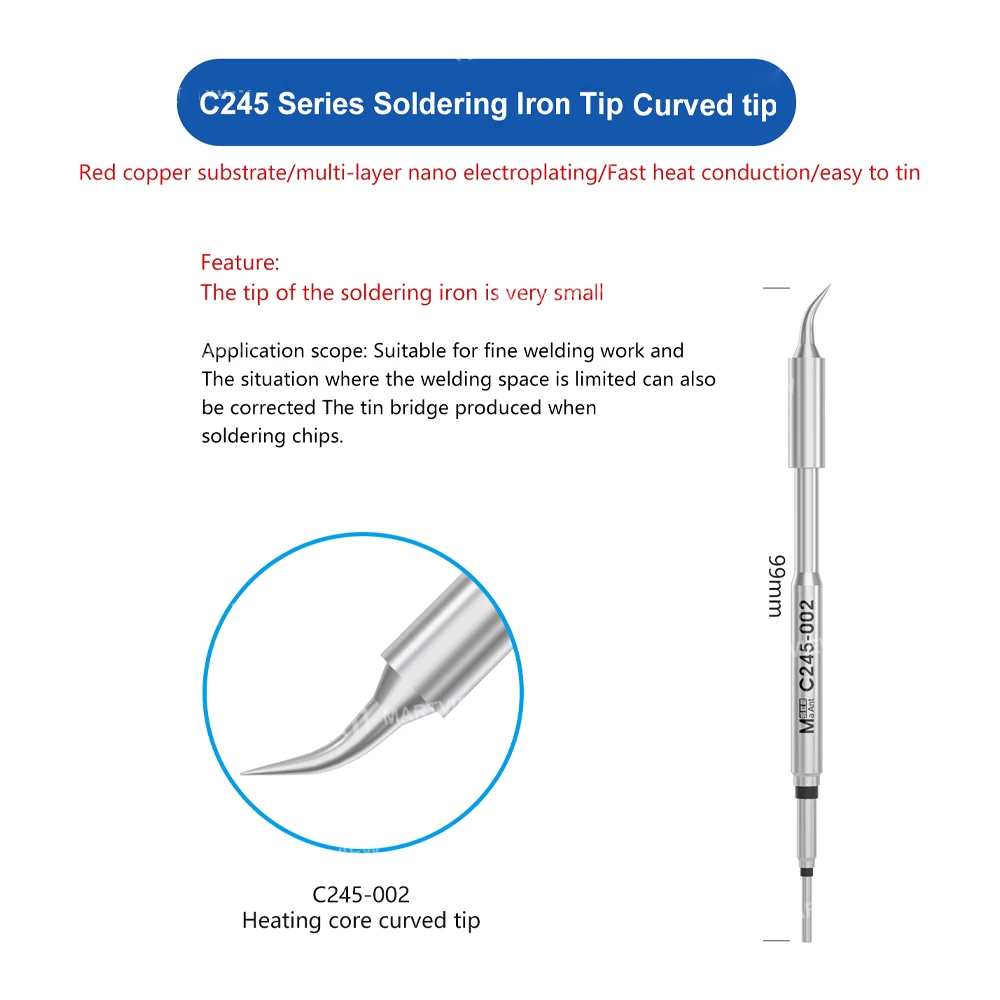 • C245 series lead-free and environmentally friendly soldering iron tip, red copper substrate, multi-layer nano electroplating, fast heat conduction, easy to tin