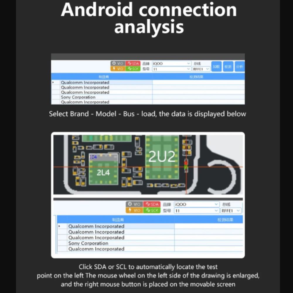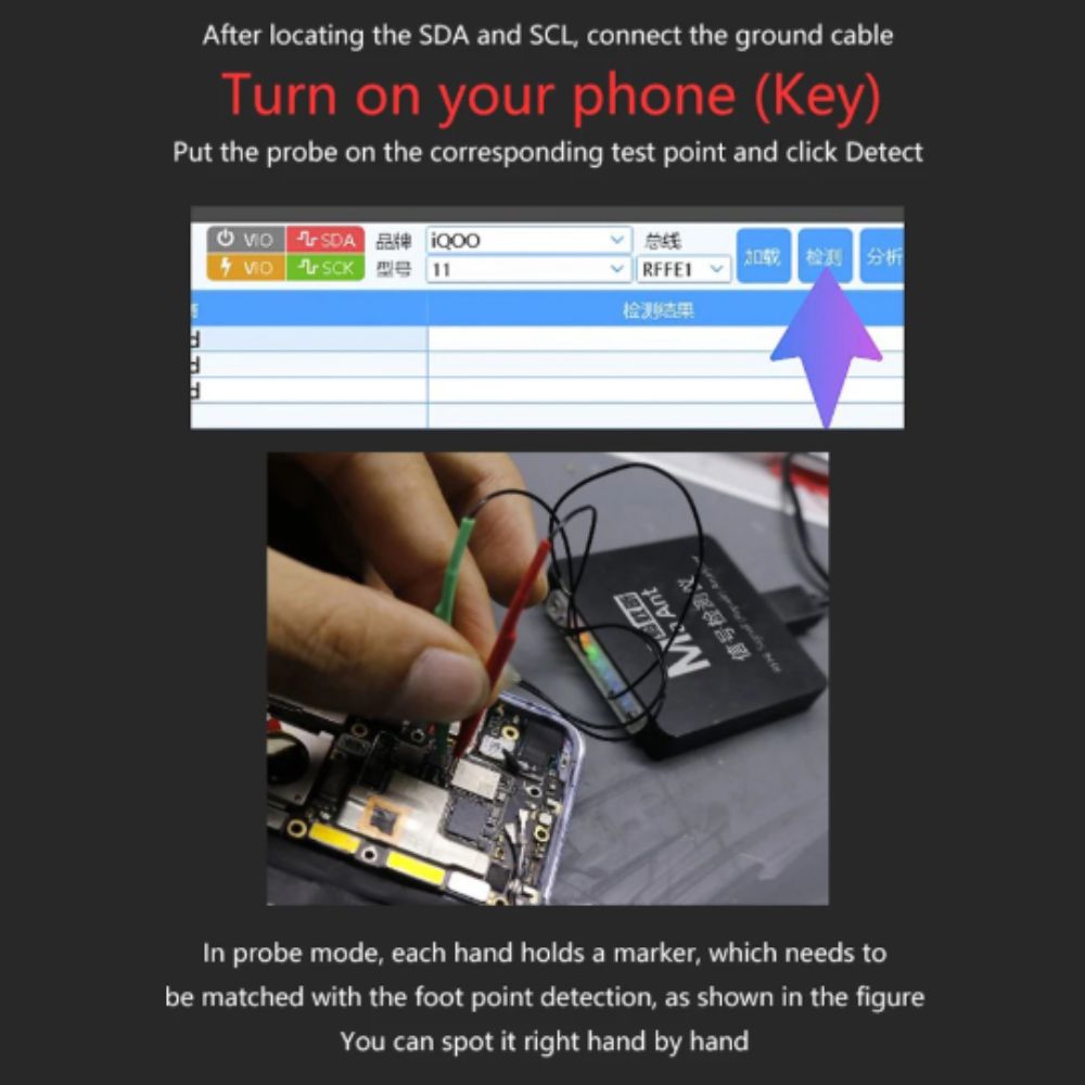 • He specializes in repairing Qualcomm baseband phones, no service, open antenna, Apple jump card, and auxiliary instruments whether the phone is flooded or broken or broken by normal use all can be used to measure, greatly reducing the time of investigation