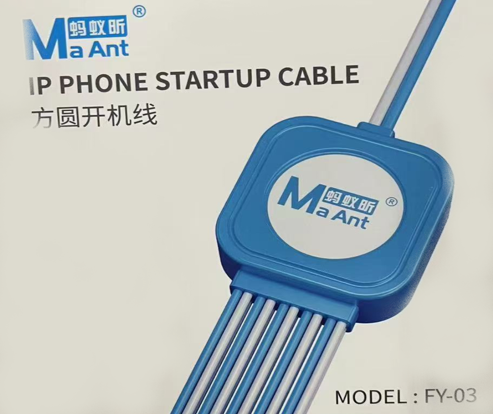 The MaAnt FY-03 iPhone Startup Cable is a professional repair tool designed for mobile phone technicians. It allows safe and efficient startup of iPhones without requiring the battery to be installed. This tool is especially useful for phone repair, testing, and troubleshooting. Built with durable materials and multiple connectors, it ensures stable power supply during phone diagnostics. The FY-03 model supports a wide range of iPhone models, making it a must-have tool for repair shops and technicians.
