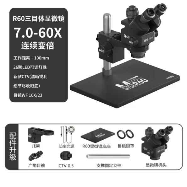 - 7.0 to 60 times stepless rate adjustment: Through the magnification fine-tuning knob, precisely master the required magnification and control the magnification of the objective lens from 0.7 to 6.0 times