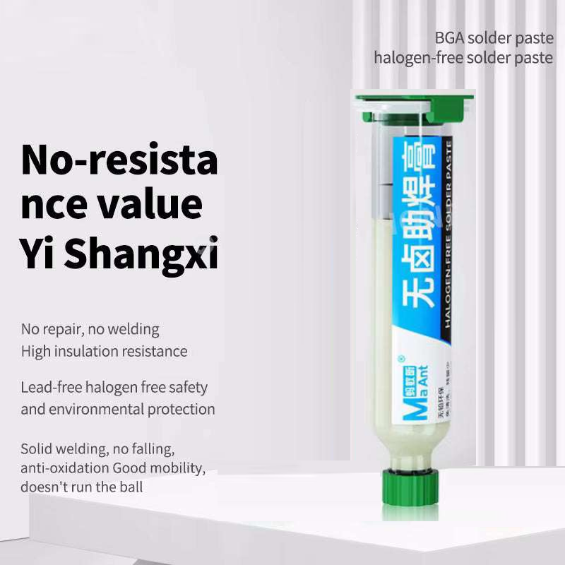 • Lead-free halogen-free BGA flux paste, no resistance, non-conductive, no cleaning, no rework, less smoke