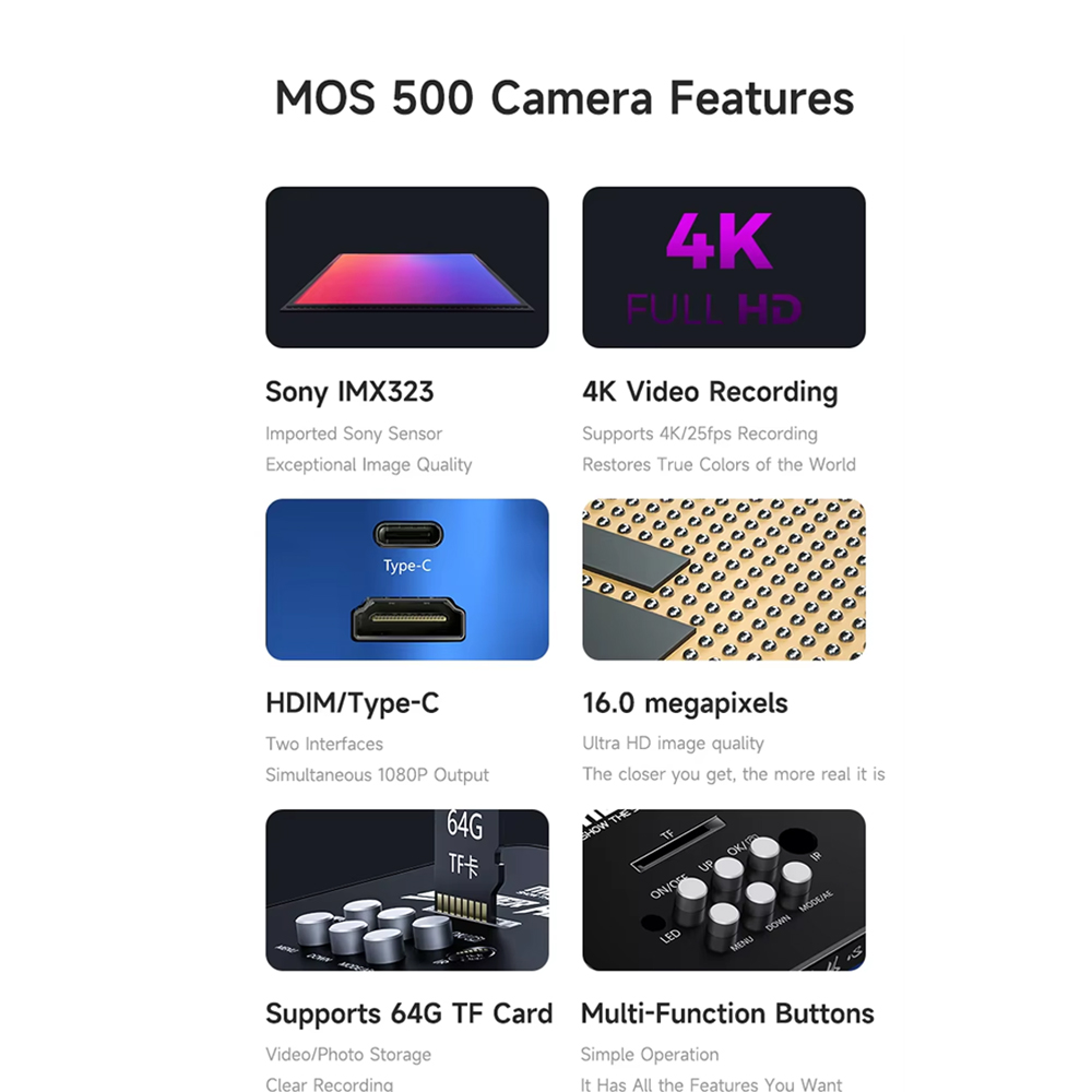 The Mechanic MOS 500 HD Industrial Camera is a professional-grade imaging tool designed for use in industrial and repair applications, particularly in the electronics repair industry. Below are its primary uses:
