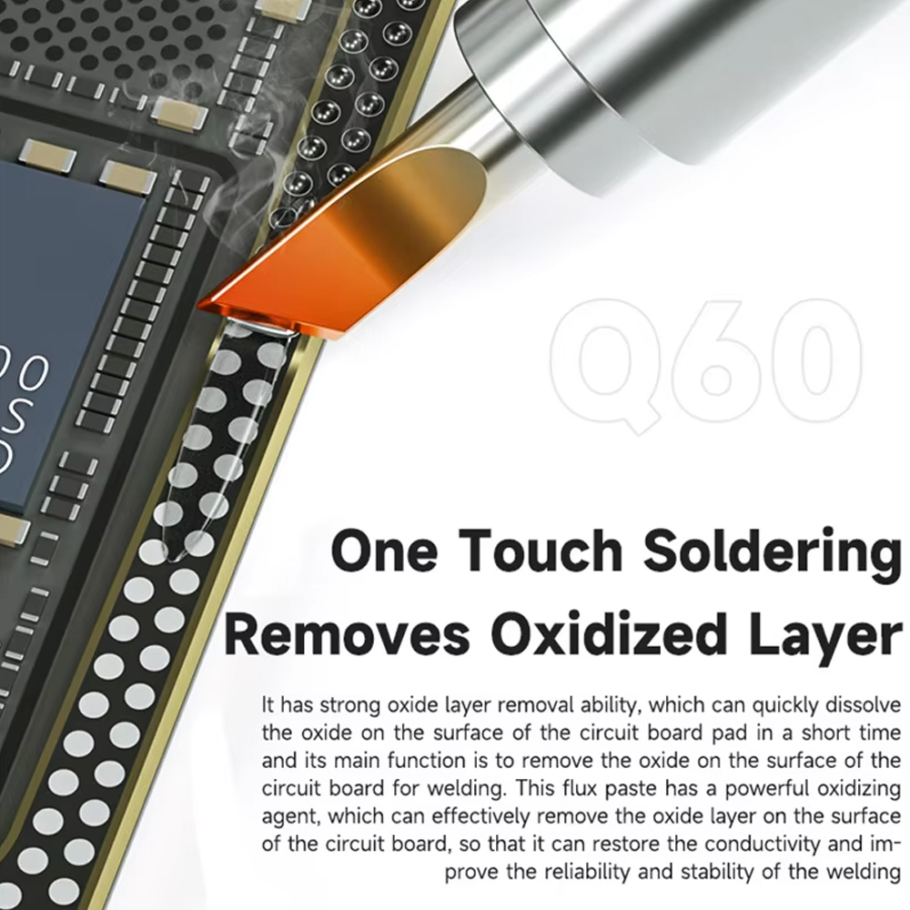 The Mechanic Q80 Powerful Flux Paste is a high-quality soldering aid used extensively in electronic and mobile phone repairs. Its primary purpose is to improve the soldering process by enhancing the flow and bonding of solder material. Below are its uses: