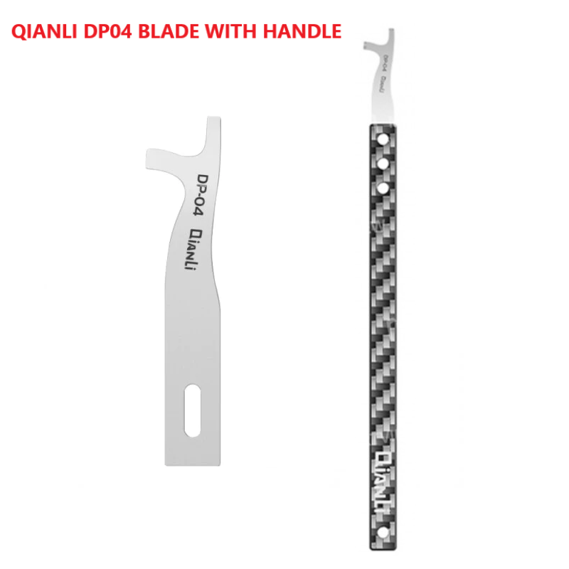 The QIANLI DP-04 BLADE WITH HANDLE is a specialized tool designed for cleaning mobile phone integrated circuits (ICs). With its precision blade and ergonomic handle, it allows technicians to effectively remove dust, debris, and contaminants from delicate IC components without causing damage. This tool is essential for maintaining the functionality and reliability of mobile phones by ensuring that ICs are clean and free from foreign particles that could hinder their performance. Its design ensures precise and safe cleaning, making it an indispensable asset for mobile phone repair professionals.