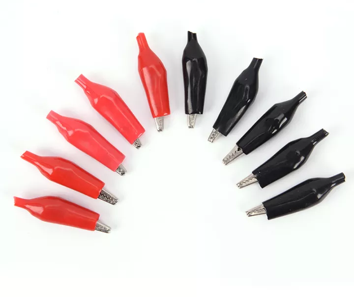 An Red And Black Chimti sometimes called a crocodile clip, is a mechanical device with a spring-loaded alligator jaw. Its serrated metal jaws are utilized to make an electrical connection that is only momentary. Serrated jaws are forced to hold an object by a spring. To prevent short circuits, the device is insulated with plastic.