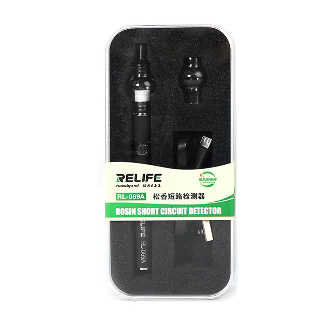RL-069A Rosin dispenser RL-069A Short circuit detection auxiliary artifact Short-circuit detection assistant, Suitable for detecting short circuit fault points of various mobile phones and computer motherboard lines, etc. Precise atomization, No need to use soldering iron repeatedly, Reduce rosin waste Built-in rechargeable lithium battery, longer battery life, USB charging plug, innovative design, can be used wirelessly, and can also be used while charging